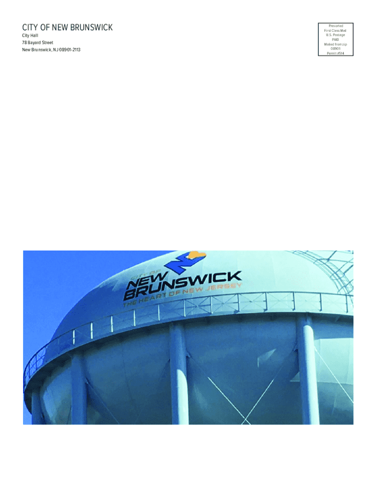 CITY OF NEW BRUNSWICK City Hall 78 Bayard Street New Brunswick, NJ 089012113Presorted First Class Mail U.S. Postage PAID Mailed from zip 08901 Permit #514Dear Water Consumer, The City of New Brunswick