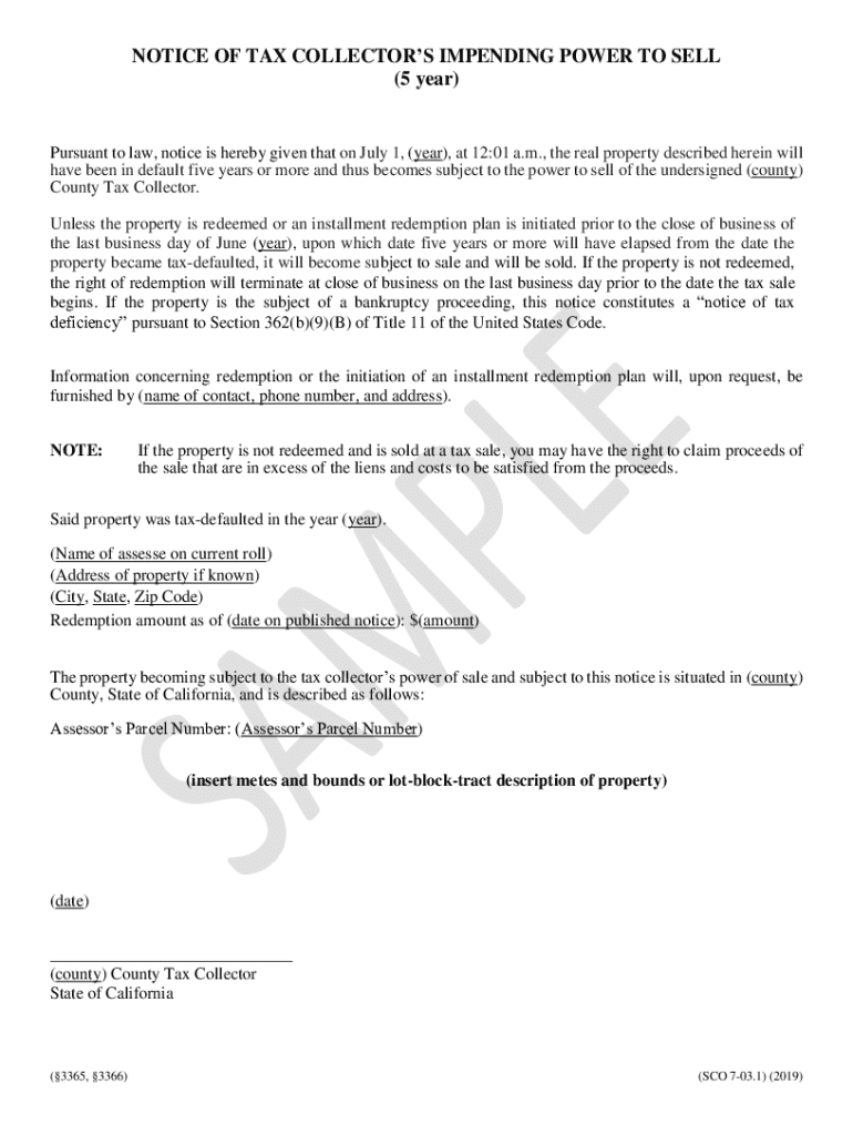 Get the free Notice of Impending Power to Sell Tax-Defaulted Property ...