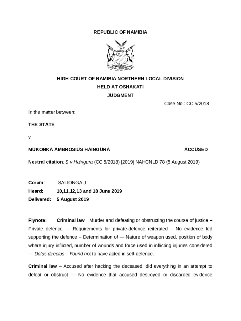 Get the free Neutral citation: S v Haingura (CC 5/2018) 2019 NAHCNLD 78 (5 August 2019)