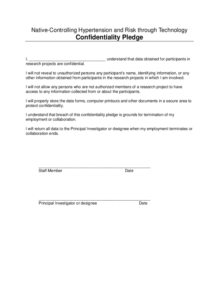 NativeControlling Hypertension and Risk through TechnologyConfidentiality Pledge, ___ understand that data obtained for participants in
