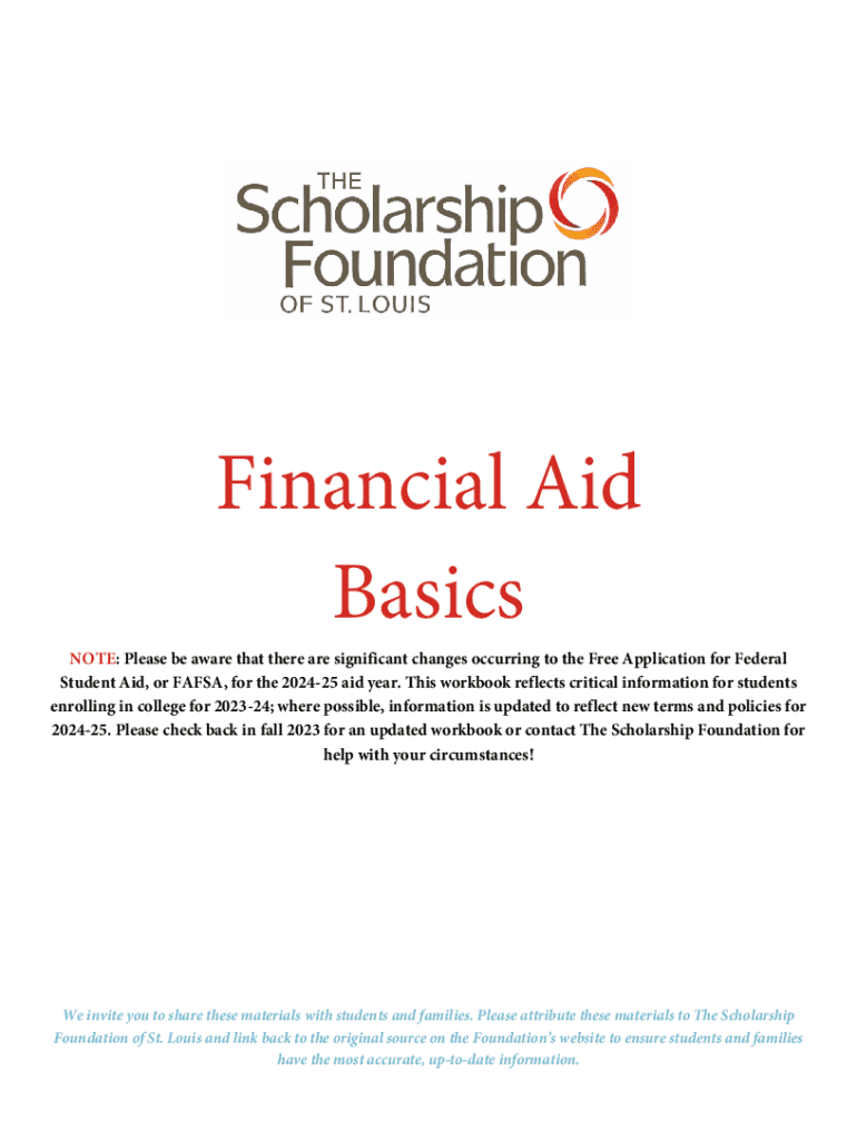 Financial Aid BasicsNOTE: Please be aware that there are significant changes occurring to the Free Application for Federal Student Aid, or FAFSA, for the 202425 aid year. This workbook reflects critical