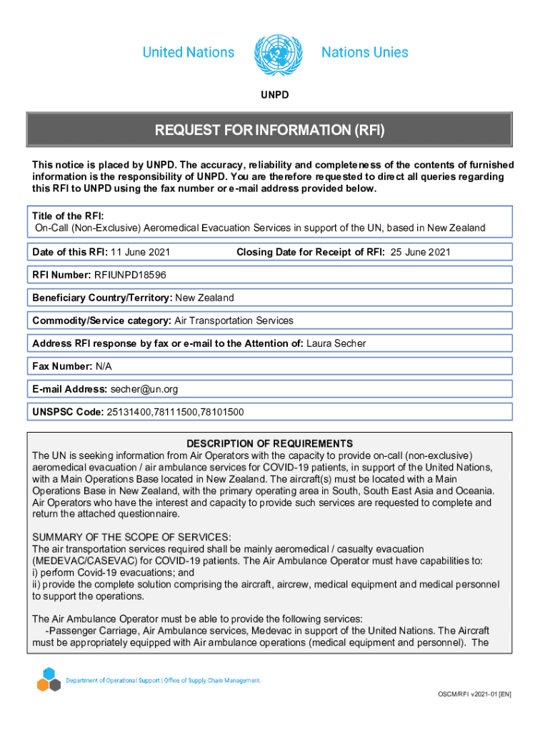 UNPDREQUEST FOR INFORMATION (RFI) This notice is placed by UNPD. The accuracy, reliability and completeness of the contents of furnished information is the responsibility of UNPD. You are therefore