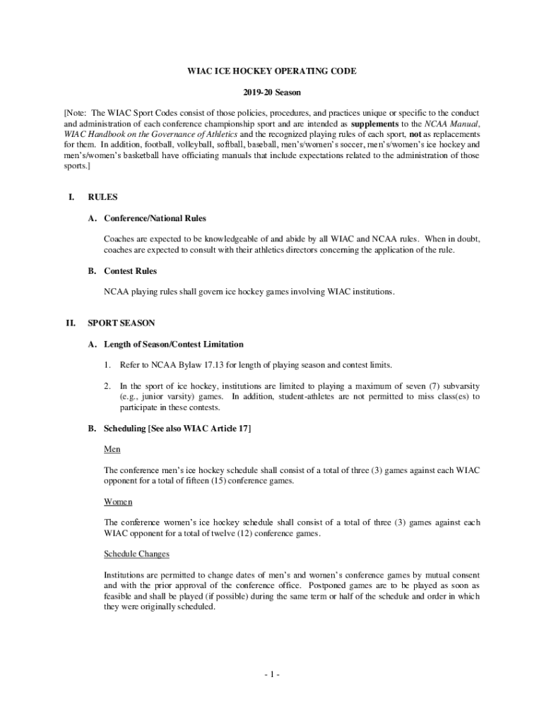 WIAC ICE HOCKEY OPERATING CODE 201920 Season [Note: The WIAC Sport Codes consist of those policies, procedures, and practices unique or specific to the conduct and administration of each conference