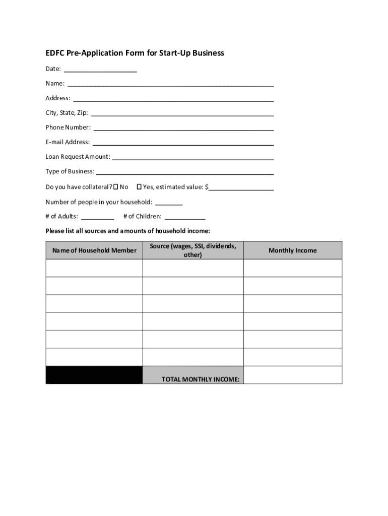 The application must report financial data, business objectives, projected revenue, and any collateral offered to secure the loan.