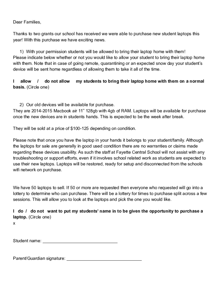 Get the free New Laptop Info to Families