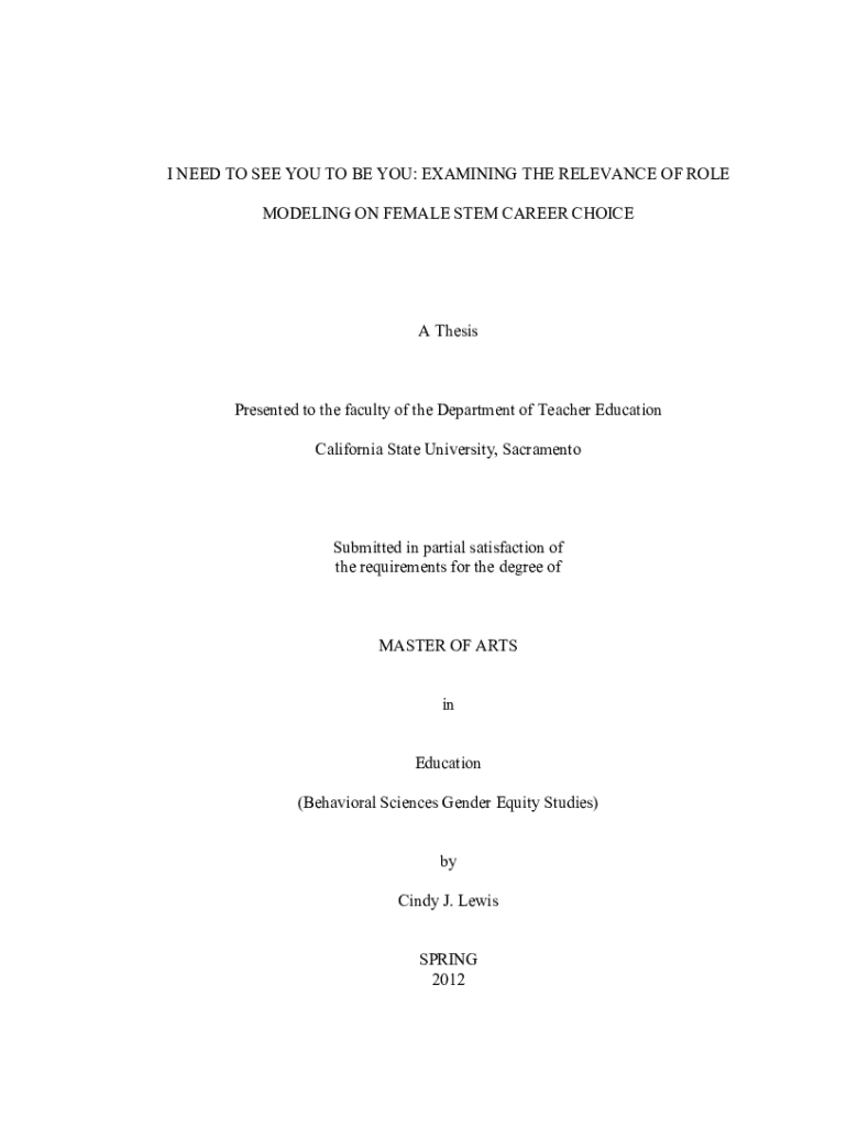 MODELING ON FEMALE STEM CAREER CHOICE ThesisPresented to the faculty of the Department of Teacher Education