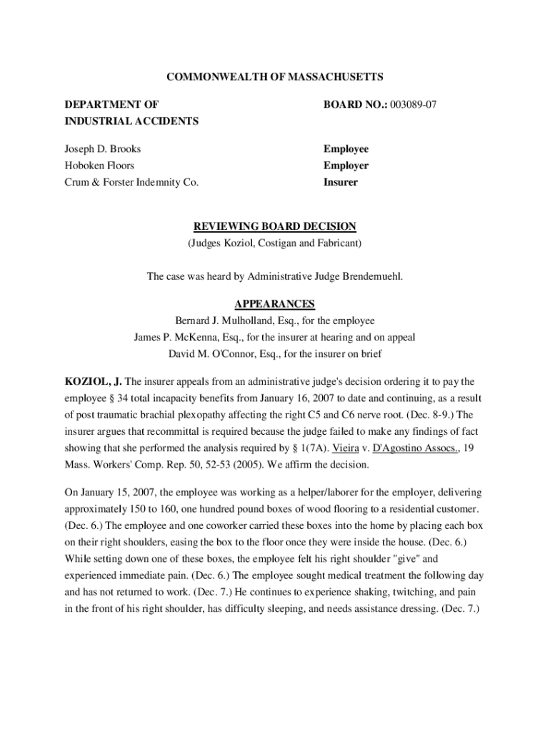 Get the free Joseph D. Brooks v Hoboken Floors