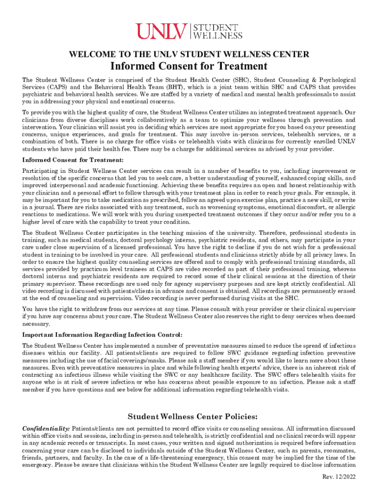 Get the free Student Health Center Informed Consent Packet