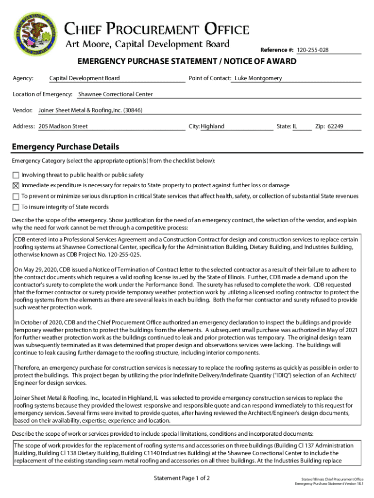 Reference #: 120255028EMERGENCY PURCHASE STATEMENT / NOTICE OF AWARD