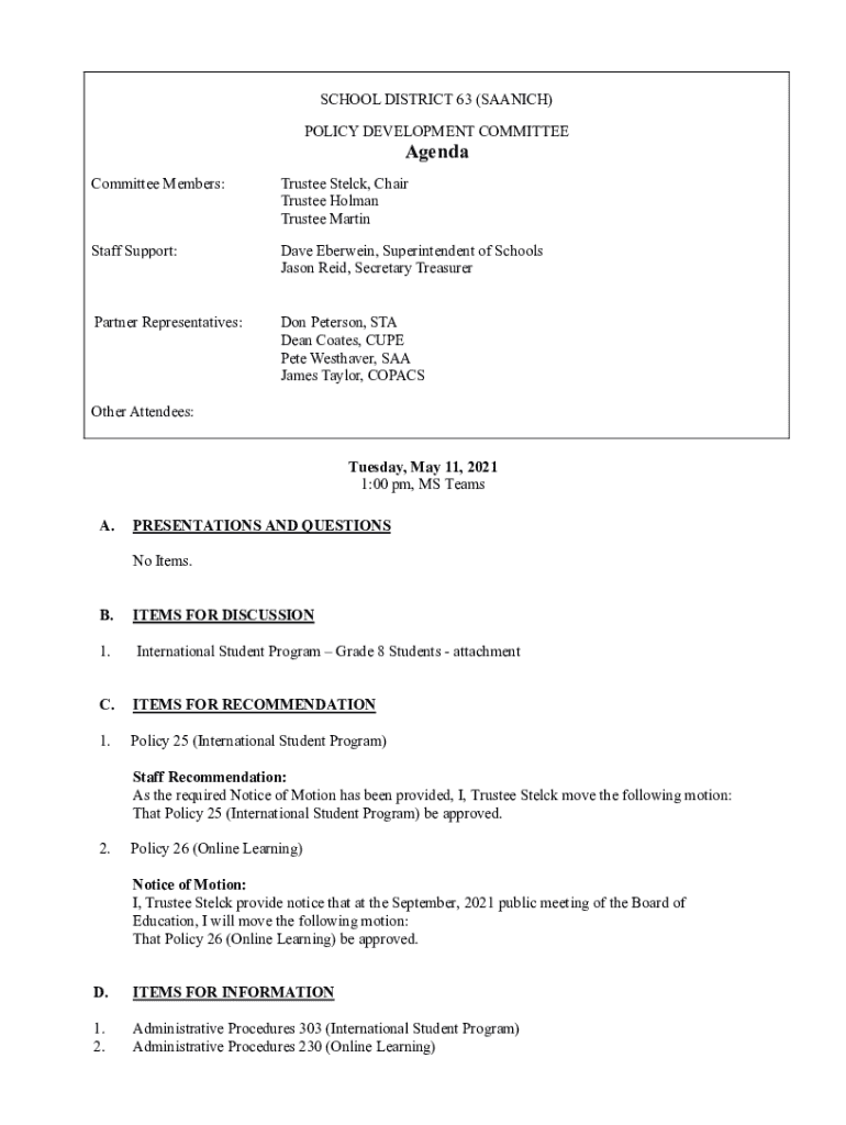 POLICY DEVELOPMENT COMMITTEEAgendaCommittee Members:Trustee Stock, Chair