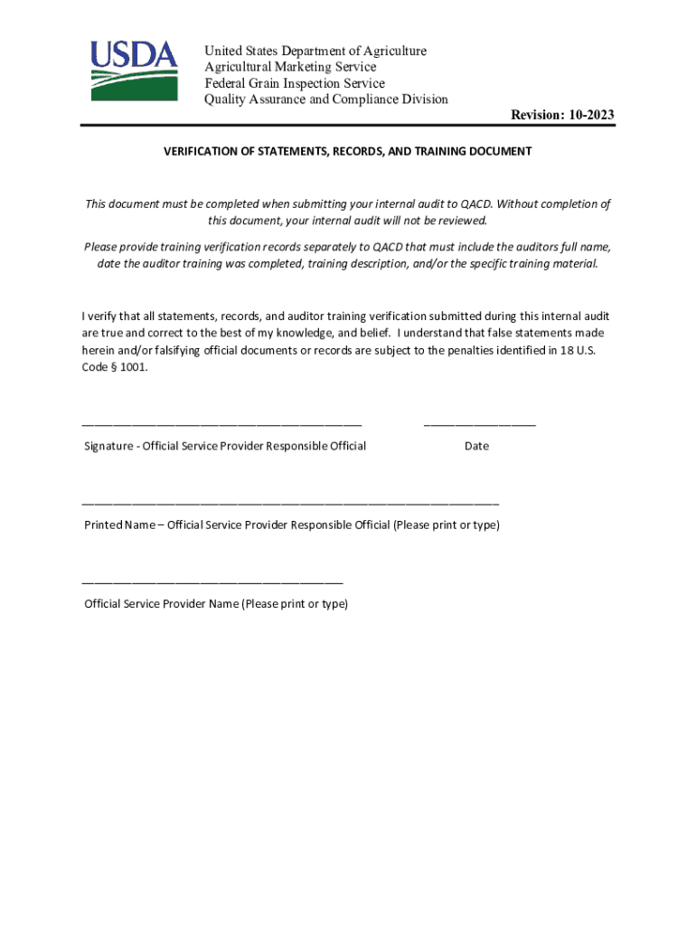 Quality Assurance and Compliance DivisionRevision: 102023VERIFICATION OF STATEMENTS, RECORDS,