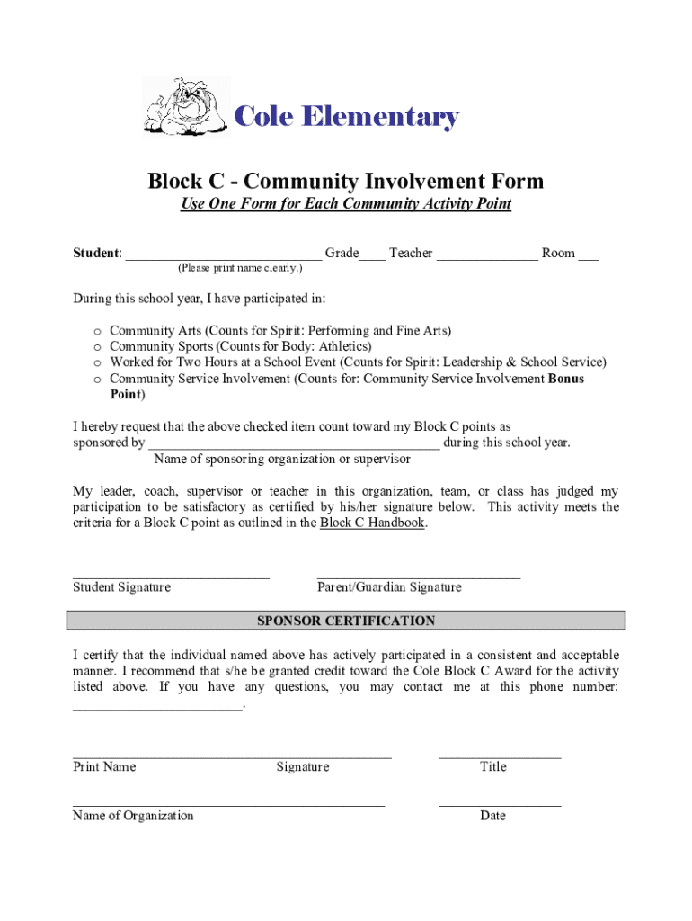 Get the free Block C - Community Involvement Form