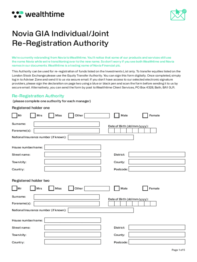Get the free Novia GIA Individual/Joint Re-Registration Authority