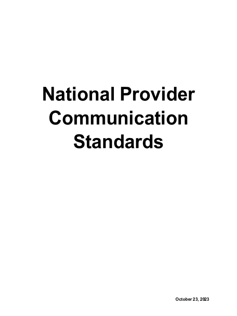 National Provider Communication Standards October 23, 2023Whats Changed? For the complete list of previous changes, see the What's Changed? Archives at the end of this document. Accordions Description