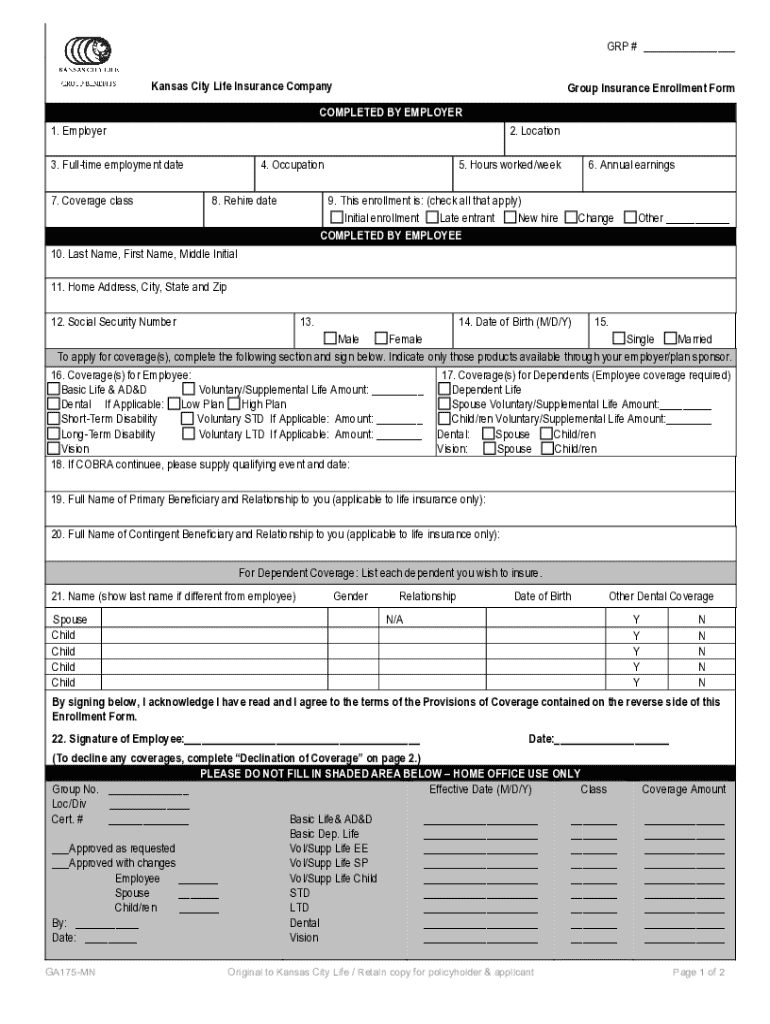 Kansas City Life Insurance CompuGroup Insurance Enrollment FormCOMPLETED BY EMPLOYER