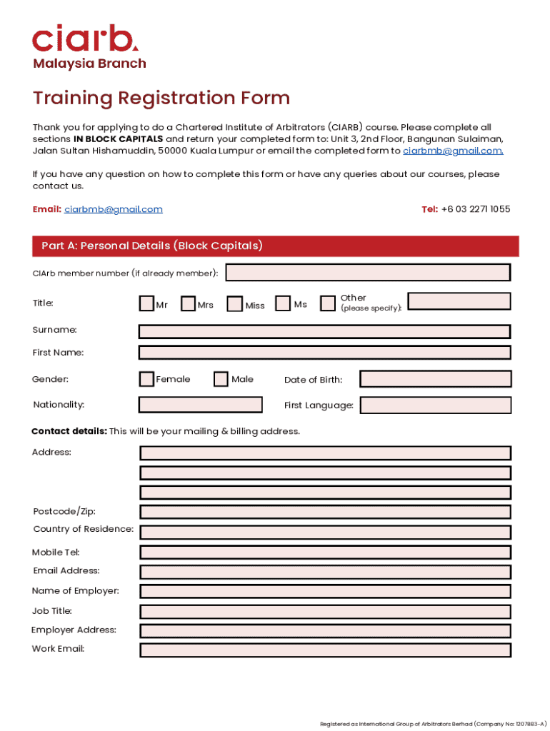 Thank you for applying to do a Chartered Institute of Arbitrators (CIRB) course. Please complete all