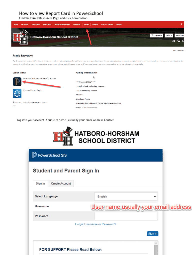 Find the Family Resources Page and click PowerSchool into your account. Your username is usually your email address ContactS elect the Report Card from the Minute