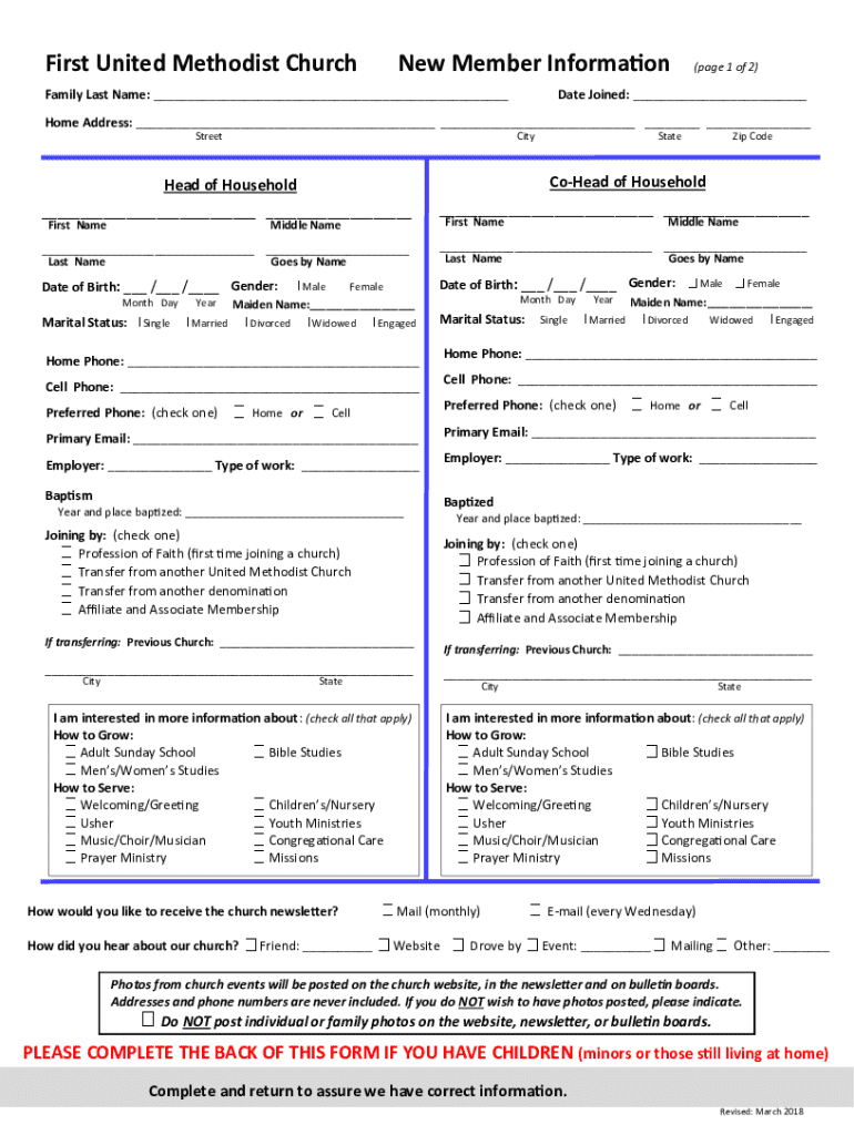 Get the free First United Methodist Church New Member Information