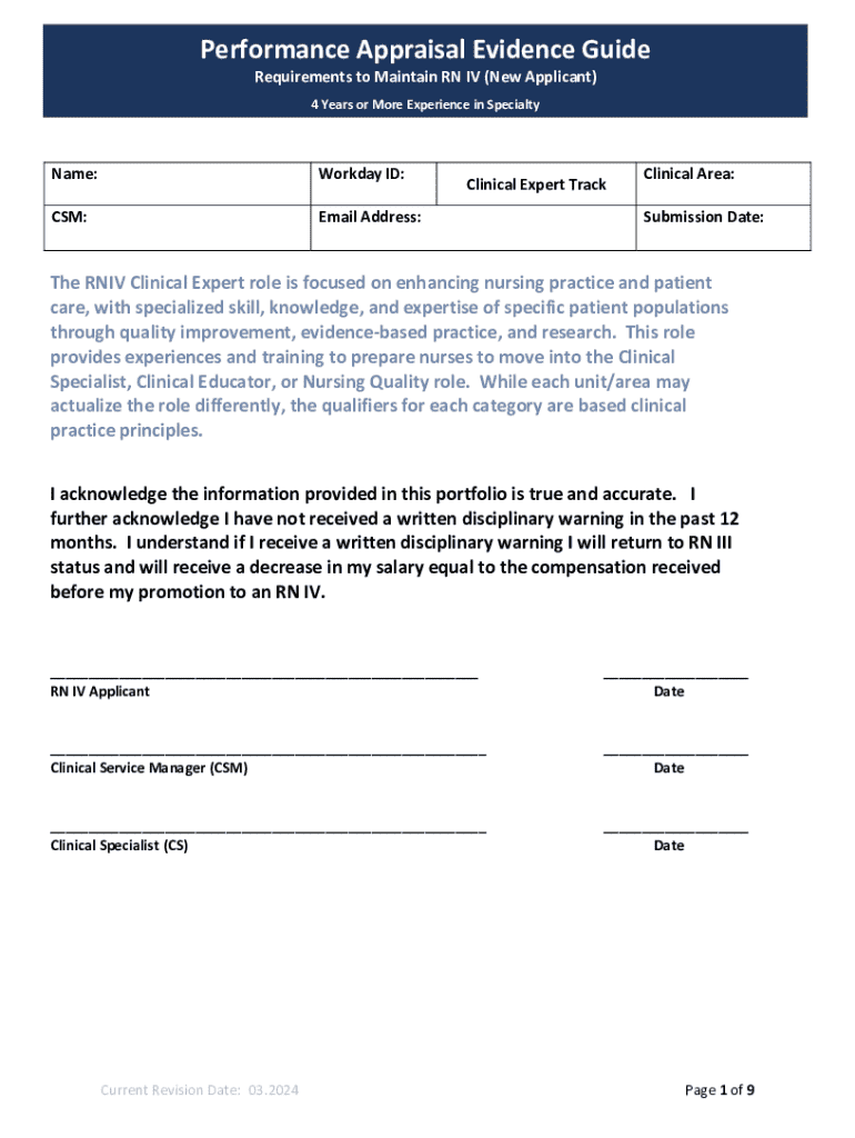 Read through the performance appraisal evidence guide thoroughly to understand the criteria and expectations