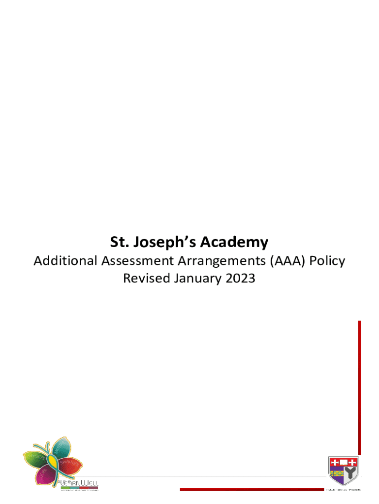 St. Josephs Academy Additional Assessment Arrangements (AAA) Policy Revised January 20231|P operational This document contains information and guidance for staff around the provision of Additional