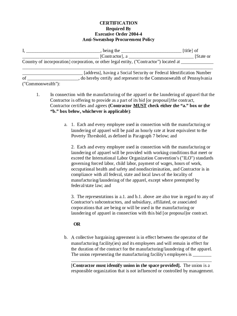 The Anti-Sweatshop Procurement Policy is a writable document required to be submitted to the required address in order to provide certain info. It must be filled-out and signed, which may be done in hard copy, or via a certain software such as PDFfiller. This tool allows to fill out any PDF or Word document right in the web, customize it according to your requirements and put a legally-binding e-signature. Right away after completion, user can easily send the Anti-Sweatshop Procurement Policy to the relevant receiver, or multiple individuals via email or fax. The blank is printable too due to PDFfiller feature and options presented for printing out adjustment. Both in digital and in hard copy, your form will have got clean and professional appearance. You may also turn it into a template for later, there's no need to create a new file from the beginning. All you need to do is to amend the ready sample.