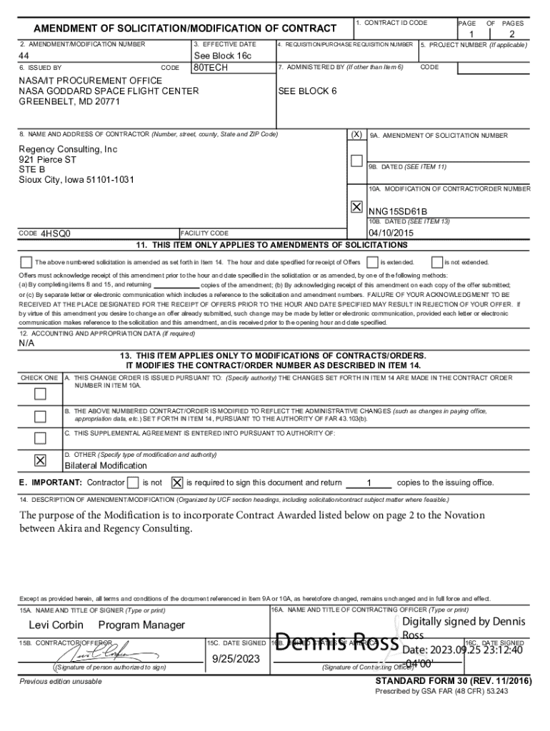 NNG15SD61B Mod 44 SF30PDF is a specific form used in federal contracting processes, likely related to adjustments or modifications to contracts.