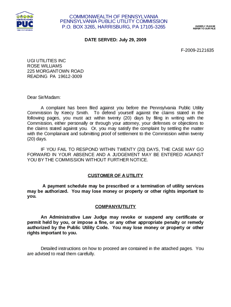 Instructions for the Dauphin Con. Wat. Supp. Co. v. Pa. P.U.C form