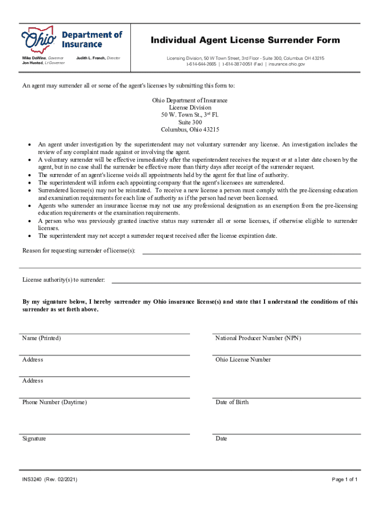 Any licensed individual agent who no longer wishes to maintain their license or who is required to relinquish it due to regulatory or personal reasons must file an individual agent license surrender.