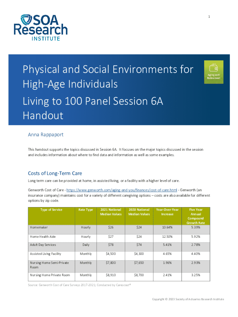 Get the free Physical and Social Environments for High-Age Individuals: Living to ...