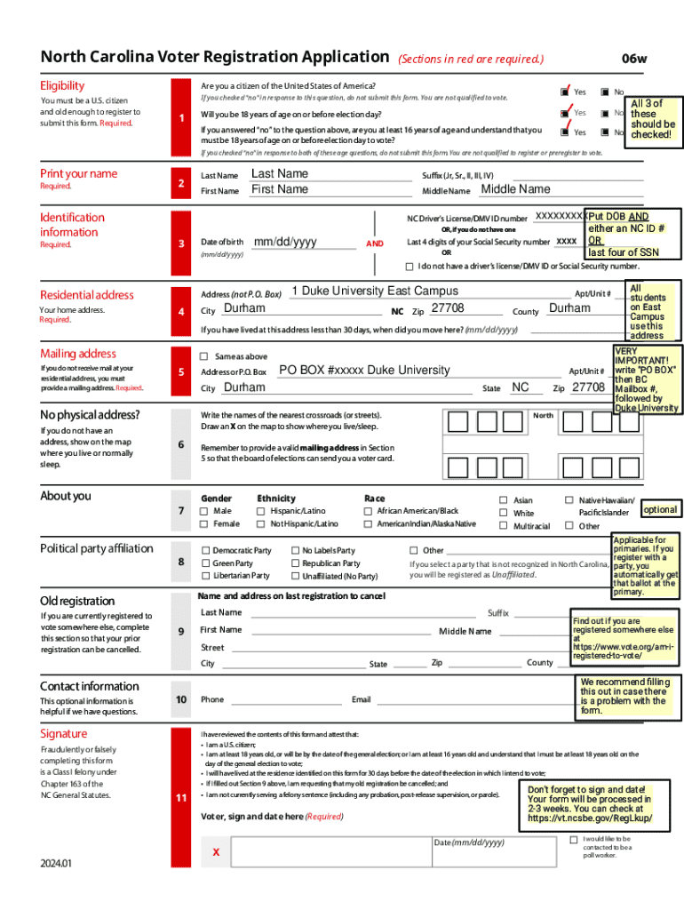Get the free North Carolina Voter Registration Application (Sections in red ...