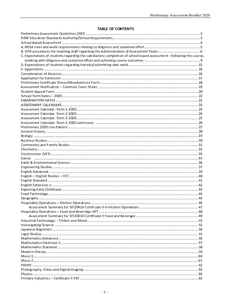 Preliminary Assessment Booklet 2020TABLE OF CONTENTS Preliminary Assessment Guidelines 2019 ......................................................................................................................