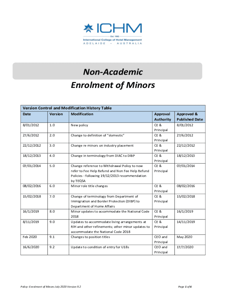 Get the free Non-Academic Enrolment of Minors
