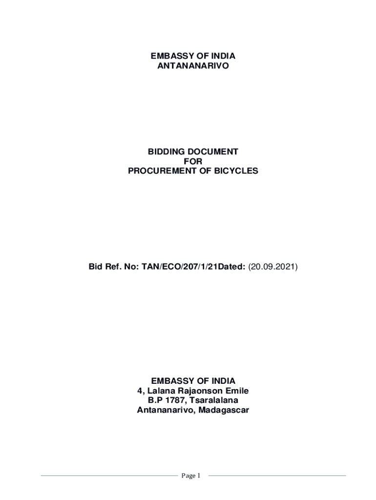 Get the free Tender Document for Procurement of Bicycles