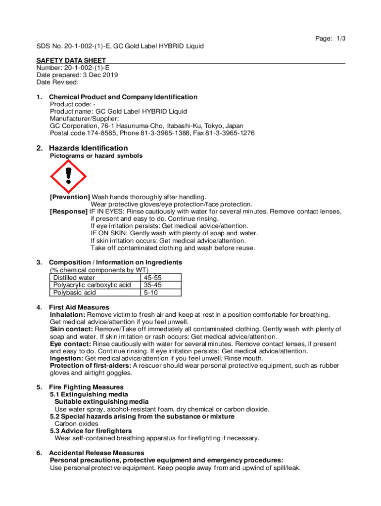 SDS No. 201002(1)E, GC Gold Label HYBRID Liquid