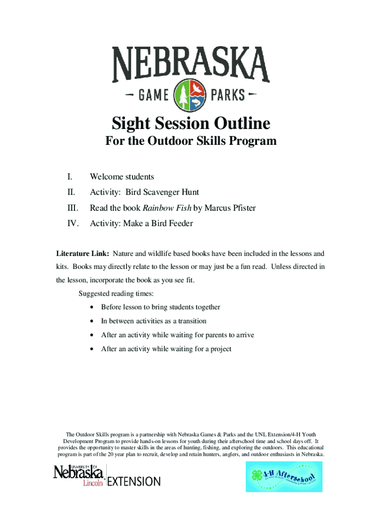 I. Welcome students. Activity: Bird Scavenger Hunting. Read the book Rainbow Fish by Marcus Wisteria. Activity: Make a Bird FeederLiterature Link: