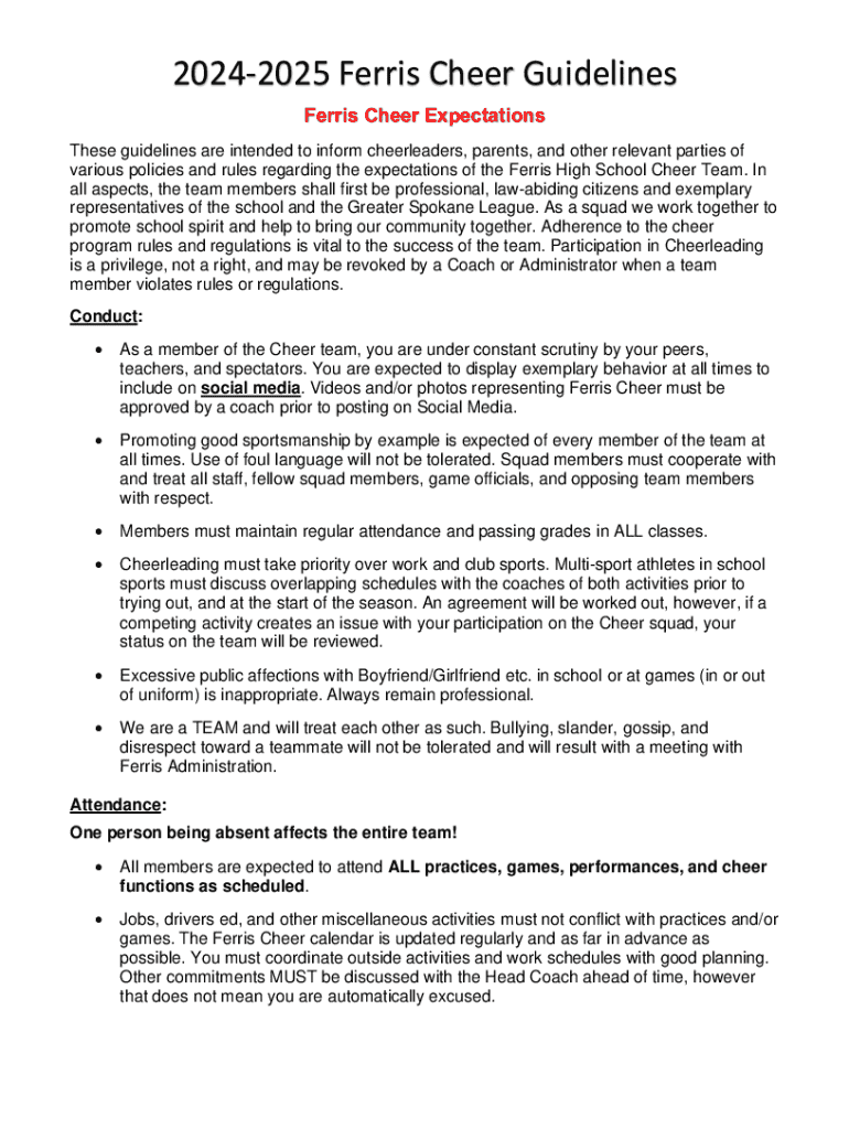 These guidelines are intended to inform cheerleaders, parents, and other relevant parties of
