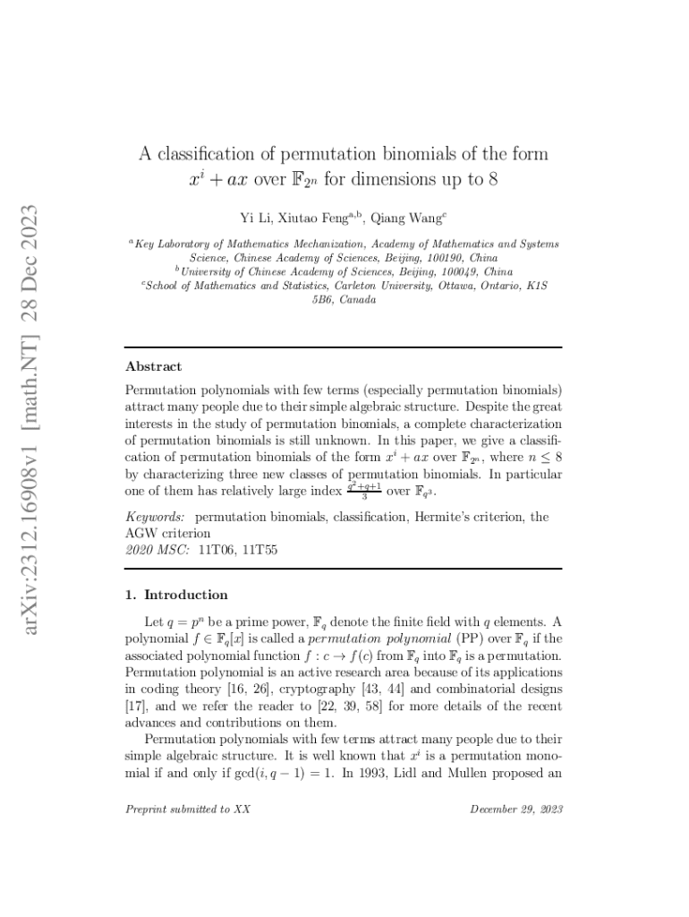 Get the free A classification of permutation binomials of the form xi+ax over F2n ...