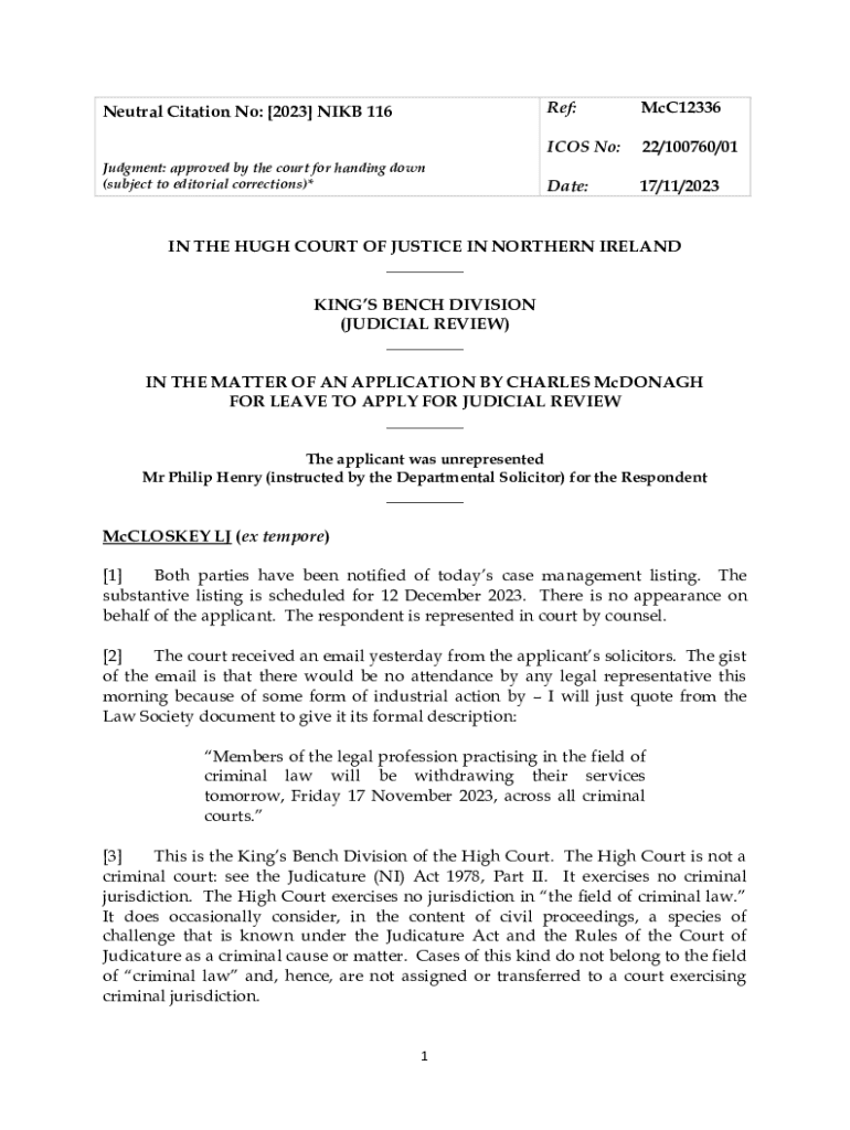 (subject to editorial corrections)*Ref:McC12336ICOS No:22/100760/01Date:17/11/2023IN THE HUGH COURT OF JUSTICE