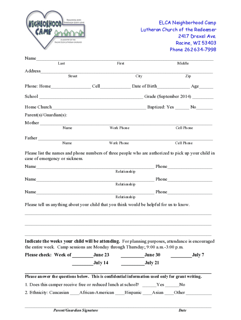 StreetCityZipPhone: Home___ Cell___ Date of Birth___ Age___