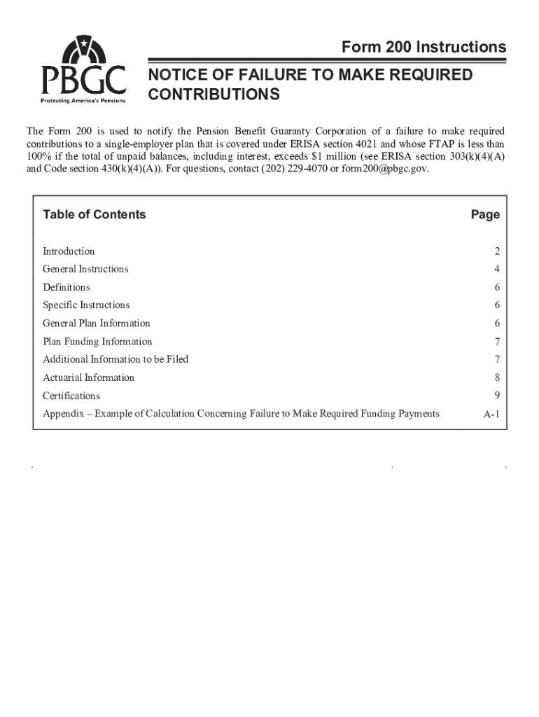 Get the free Form 200 Instructions - Notice of Failure to Make Required Contributions