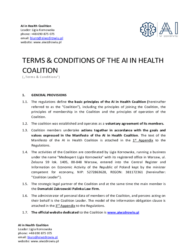 website: www.aiwzdrowiu.plTERMS & CONDITIONS OF THE AI IN HEALTH