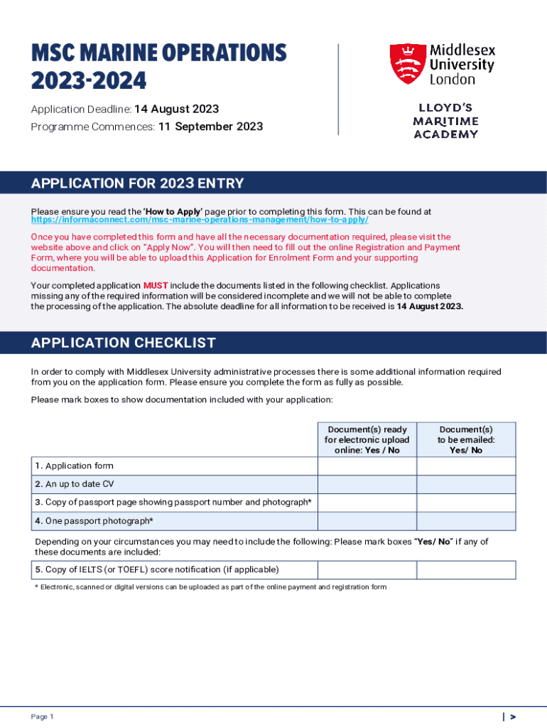 Filling out the marine operations management MSC-part typically involves completing an application form, providing personal and educational information, and possibly submitting relevant documents.