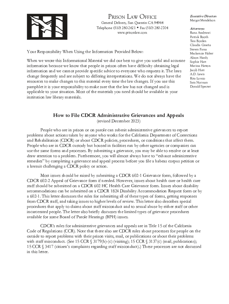 Get the free Online PRISON LAW OFFICE General Delivery ...