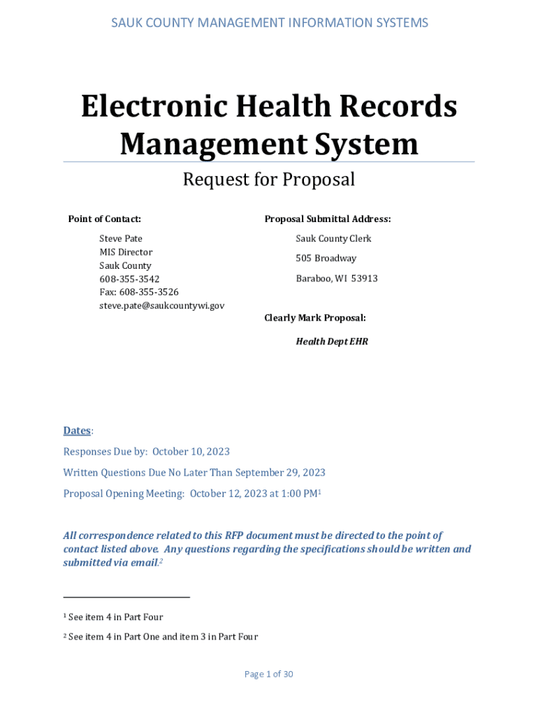 SANK COUNTY MANAGEMENT INFORMATION SYSTEMSElectronic Health Records