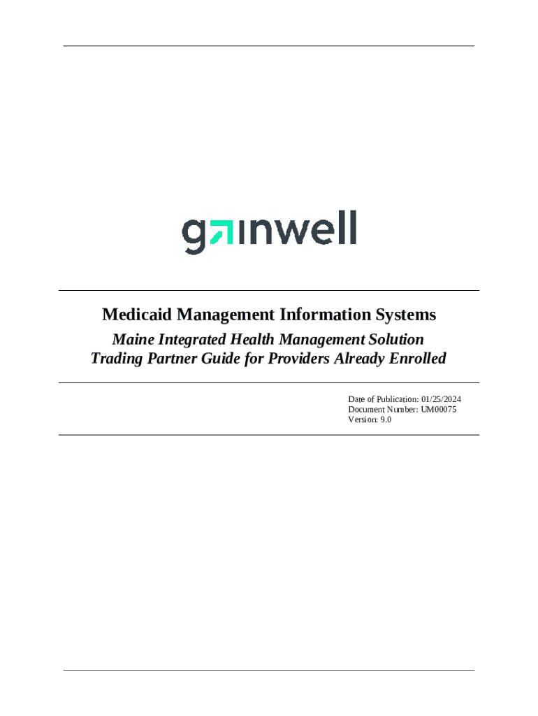 Template Updated existing document to match language and screenshots in other TP Guides, added w-9 note to demographic screen instructions, added Trading Partner permission codes section - mainecare maine instructions
