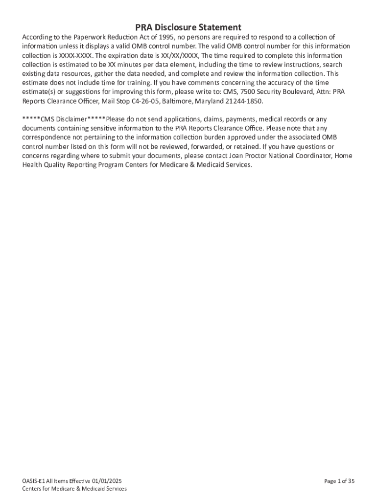 Get the free Outcome and Assessment Information Set Version E. OASIS-E1