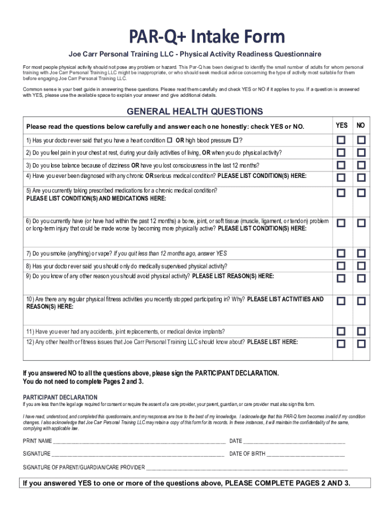 Get the free PAR-Q+ Intake Form - Joe Carr
