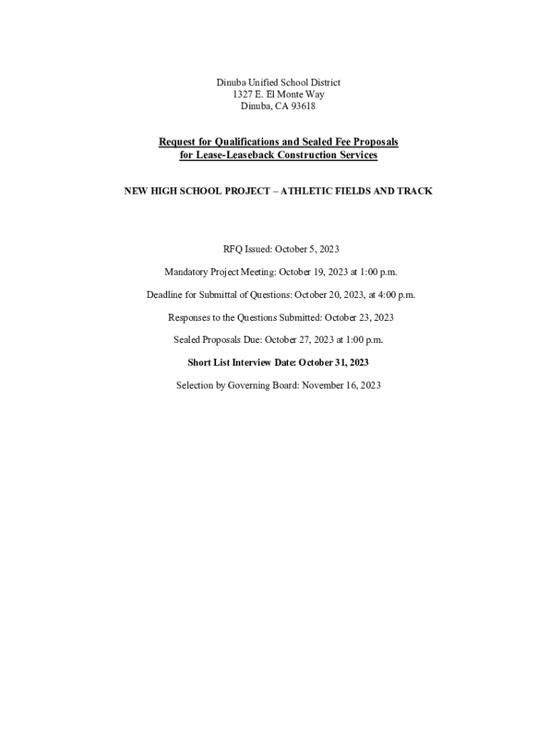 Danube, CA 93618Request for Qualifications and Sealed Fee Proposals