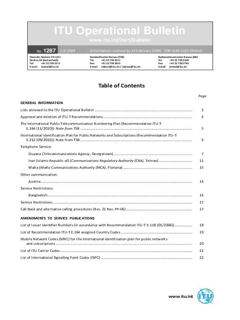 Get the free No. 1265 - ITU Operational Bulletin online