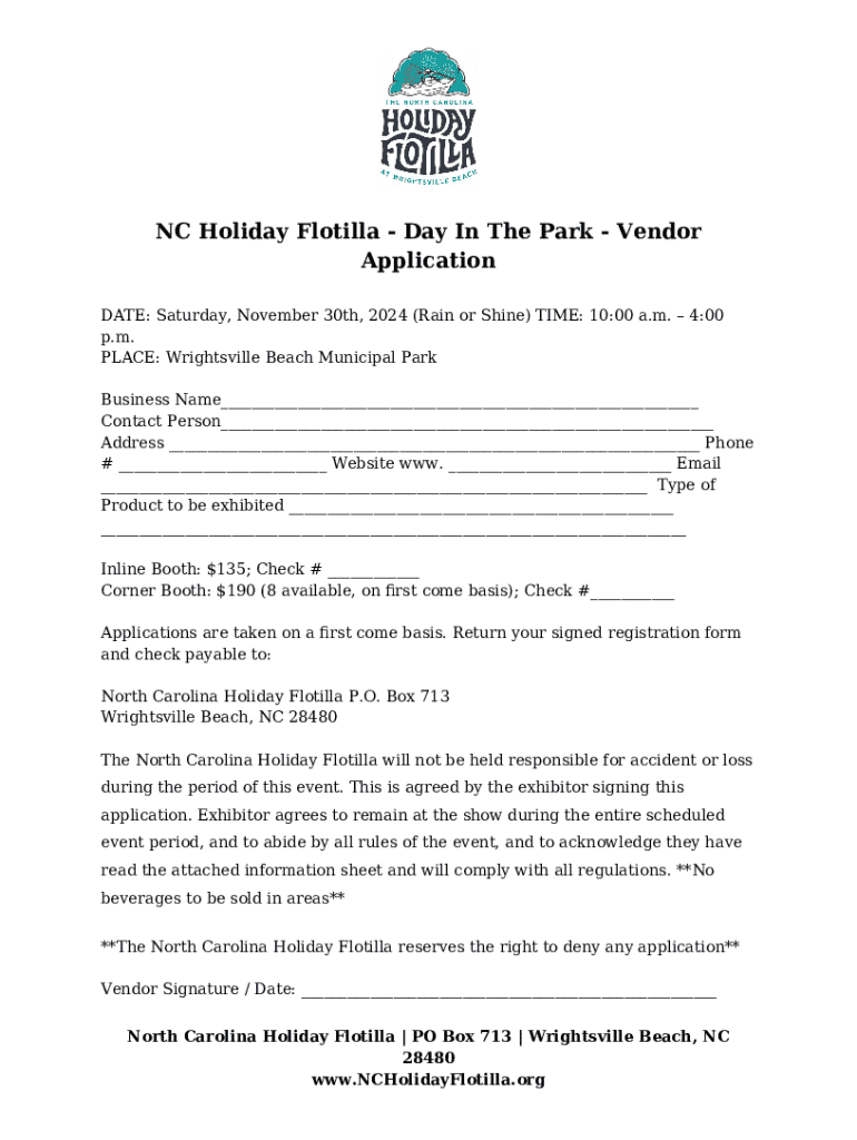 NC Holiday Flotilla - Day In The Park - Vendor Application template instructions